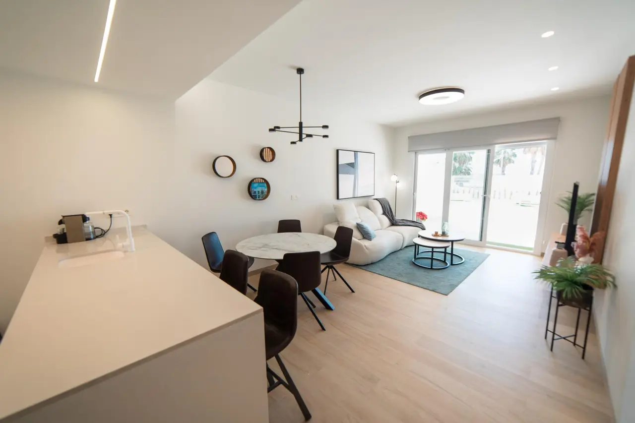 NOWY BUDYNEK MIESZKALNY W EL RASO, GUARDAMAR DEL SEGURA Nowy budynek prywatny kompleks mieszkalny z apartamentami w El Raso, Guardamar del Segura. Kompleks składający się z 135 domów z 2 lub 3 sypialniami w blokach o 3 lub 5 piętrach plus solarium, zaprojektowany w minimalistyczny sposób i z zachowaniem wysokich standardów jakości, jego nowoczesna architektura harmonizuje z naszymi dużymi otwartymi przestrzeniami, naturą i basenami, oferując wyjątkową i spokojną atmosferę. Piękne kompleksy mieszkalne, w tym przeszklony obszar GYM-Spa z widokiem na tereny zielone, baseny i z jego tarasu z widokiem na słoną lagunę La Mata, kort tenisowy z wiosłami, itp. Miejsce parkingowe wliczone w cenę. Rozwój znajduje się na wyjątkowej i niepowtarzalnej działce, graniczącej z naturalnym krajobrazem słonej laguny, ciesz się jej bioróżnorodnością i wyjątkowym środowiskiem, w El Raso de Guardamar del Segura, z wszelkiego rodzaju usługami i udogodnieniami i blisko najlepszych plaż Morza Śródziemnego. Jednocześnie, dzięki bliskości plaży El Moncayo, będziesz mógł wybrać się na przejażdżkę rowerową i cieszyć się najlepszym klimatem Costa Blanca. Dodatkowo i dzięki pięciu poziomom niektórych bloków, które tworzą mieszkalne, wszystkie z nich skierowane są na południe, włączamy w naszych luksusowych penthousach, w pełni wyposażoną kuchnię na solarium, prysznic na zewnątrz (ciepła/zimna woda), i obszar jacuzzi, aby zakończyć wyjątkowe doświadczenie życia przed wyjątkowym i niepowtarzalnym środowiskiem naturalnym. El Raso jest częścią Guardamar del Segura. Guardamar del Segura to miasto położone na Costa Blanca Południowa. Z jego 11 kilometrów naturalnej plaży i jego duży las sosnowy. Guardamar del Segura ma duży port z działalnością przez cały rok, ma duże centrum sportowe z paddle tennis, tenis, piłka nożna i duży podgrzewany basen, który działa przez cały rok. Posiada również bibliotekę, gdzie jest darmowe wifi i komputery. Guardamar del Segura znajduje się zaledwie 20 km od lotniska Alicante – Elche (El Altet), gdzie codziennie odbywa się wiele lotów z połączeniami do głównych miast europejskich, ze względu na zapotrzebowanie na turystów na Costa Blanca.