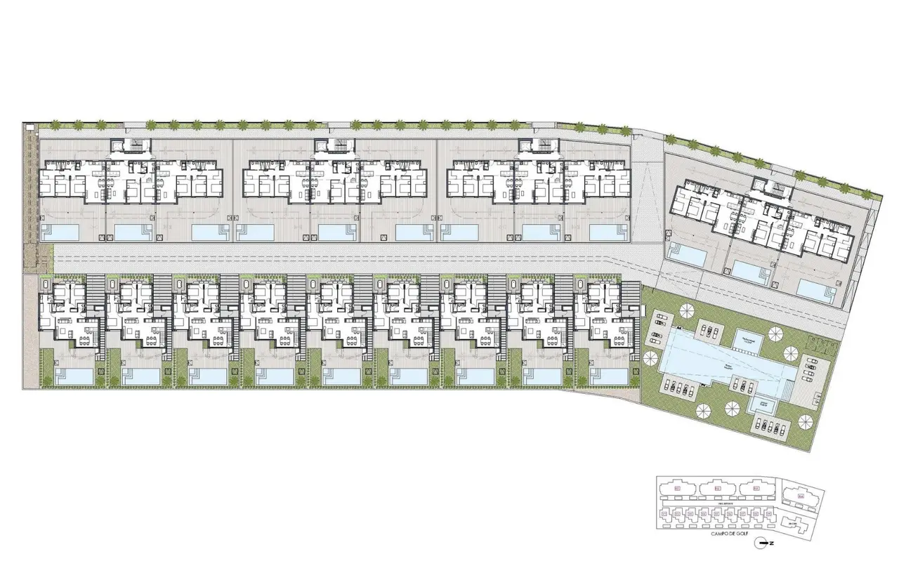 Nowe apartamenty i wille z widokiem na pole golfowe w La Serena Golf w Los Alcazares Ekskluzywna inwestycja mieszkaniowa położona tuż przy polu golfowym La Serena Odkryj tę wyjątkową, nową inwestycję mieszkaniową położoną tuż przy polu golfowym La Serena w Los Alcazares, jednym z najbardziej pożądanych nadmorskich miasteczek na Costa Calida. Ta ekskluzywna społeczność oferuje styl życia na najwyższym poziomie w otoczeniu natury, z otwartymi widokami i bezpośrednim dostępem do renomowanego 18-dołkowego pola golfowego znanego z płaskiego terenu, malowniczych jezior i technicznych wyzwań. Dzięki idealnej lokalizacji zaledwie 1,7 km od plaż Mar Menor i centrum miasta mieszkańcy mogą cieszyć się zarówno spokojem, jak i łatwym dostępem do restauracji, sklepów i wszystkich niezbędnych usług. Los Alcazares słynie z relaksującej atmosfery, długich promenad i ciepłych, płytkich wód, co czyni je idealnym miejscem do zamieszkania przez cały rok lub na wakacyjne pobyty. Nowoczesne apartamenty z tarasami i prywatnymi solariami Inwestycja obejmuje 36 nowoczesnych apartamentów rozmieszczonych w czterech blokach. Nabywcy mogą wybierać spośród układów z dwiema lub trzema sypialniami i dwiema łazienkami, w tym jedną przy sypialni. Apartamenty na parterze posiadają przestronne tarasy z opcją dodania prywatnego basenu. Lokale na środkowych piętrach oferują obszerne tarasy zewnętrzne, natomiast penthouse’y wyposażone są w prywatne solaria, idealne do opalania się i spożywania posiłków na świeżym powietrzu. Wszystkie apartamenty posiadają podziemny parking oraz schowek z dostępem windą. Osiedle oferuje również pięknie zaprojektowane ogrody w stylu śródziemnomorskim oraz duży wspólny basen do dyspozycji mieszkańców. Stylowe wille parterowe z prywatnym basenem Oprócz apartamentów, inwestycja oferuje dziewięć ekskluzywnych willi parterowych. Domy te posiadają trzy sypialnie, dwie łazienki oraz dodatkową toaletę dla gości, a wszystko zaprojektowano tak, aby zapewnić płynne przejście między przestrzenią wewnętrzną a zewnętrzną. Każda willa posiada prywatny basen, ogród, schowek oraz prywatny parking. Przestronna otwarta piwnica zapewnia dodatkową elastyczną przestrzeń, którą można dostosować do indywidualnych potrzeb, np. na siłownię, strefę rozrywki lub dodatkowe miejsce do przechowywania. Wysokiej jakości wykończenia i energooszczędny projekt Wszystkie nieruchomości są zbudowane z wysokiej jakości materiałów i zgodnie z nowoczesnymi standardami. Wyposażenie obejmuje aluminiowe elementy stolarki zewnętrznej z przegrodą termiczną, w pełni wyposażone łazienki z szafkami pod umywalkę i szklanymi kabinami prysznicowymi, a także przygotowanie do montażu klimatyzacji kanałowej oraz umeblowane kuchnie w apartamentach. Wille są wyposażone w w pełni zainstalowane systemy klimatyzacyjne oraz w pełni wyposażone kuchnie z urządzeniami AGD. W blokach mieszkalnych dostępne są windy, zapewniające komfort i dostępność. Doskonała lokalizacja w pobliżu pola golfowego, plaż i udogodnień Inwestycja ta oferuje doskonałe połączenia z kluczowymi punktami zainteresowania. Międzynarodowe lotnisko w Murcji znajduje się 35 km od inwestycji, a lotnisko w Alicante – 95 km. Marina w Los Alcazares jest oddalona o zaledwie 2 km, centrum handlowe Dos Mares o 15 km, a pole golfowe Roda Golf o zaledwie 4 km. Centrum Kartageny znajduje się 25 km od inwestycji. Idealna inwestycja i okazja do życia w stylu śródziemnomorskim Ta inwestycja położona przy polu golfowym oferuje wyjątkową okazję do cieszenia się nowoczesnym stylem życia w uprzywilejowanej okolicy, blisko zarówno morza, jak i pola golfowego. Skontaktuj się z nami już dziś, aby otrzymać więcej informacji lub umówić się na oglądanie i znaleźć swój idealny dom w Los Alcazares. 968