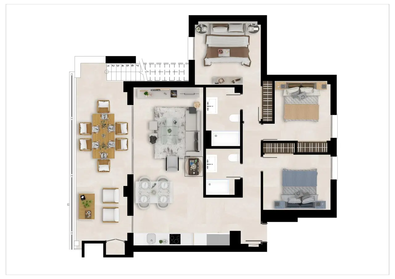 RYNEK PIERWOTNY KOMPLEKS MIESZKALNY W OŚRODKU GOLFOWYM LA CALA, MIJAS Rynek Pierwotny kompleks mieszkalny z apartamentami i penthouse’ami w La Cala Golf Resort. Rezydencja budowana jest na szczycie wzgórza z widokiem na pole golfowe Europa, w bajecznej pozycji, która zapewnia panoramiczne widoki na pole golfowe, a niektóre z nich na morze. Wszystkie nieruchomości są skierowane na południe lub południowy wschód, co oznacza, że cieszą się dużą ilością światła przez cały dzień. Kompleks mieszkalny położony w pobliżu Club House i Hotel & Spa, gdzie właściciele nieruchomości w ośrodku mogą korzystać z korzyści i zniżek oferowanych przez Privilege Card. Idealny dla rodzin szukających domu wakacyjnego lub inwestorów poszukujących nieruchomości do wynajęcia na sezon letni z dobrym zwrotem. Projekt jest podzielony na dwie niezależne działki ze 105 i 90 apartamentami, zintegrowanymi ze wspólną koncepcją architektoniczną. Apartamenty golfowe pierwszej linii znajdują się w pobliżu hotelu, domu klubowego oraz strefy sportowej i SPA. Wszystkie nieruchomości mają duże tarasy z przeszklonymi balkonami, dzięki czemu można w pełni cieszyć się wspaniałymi widokami na pole golfowe, a apartamenty na parterze mają również prywatne ogrody z widokiem na basen, ogrody wypoczynkowe i pole golfowe otaczające inwestycję. Nieruchomości mają nowoczesny rozkład z koncepcją „totalnego życia”, w której cała przestrzeń jest wykorzystywana, a duży salon integruje taras przez duże okna. Domy są w pełni wyposażone, z wbudowanymi szafami, klimatyzacją, wyposażoną kuchnią ze sprzętem AGD, pakietem oświetlenia LED oraz w pełni wyposażonymi łazienkami z szafką, lustrem i kabiną prysznicową. Dostępny jest również pakiet dodatków umożliwiających personalizację domu. Osiedle jest ogrodzone i ma różne opcje parkowania: na zewnątrz i wewnątrz. Znajduje się tam również basen dla dorosłych, basen dla niemowląt i wspólne ogrody z widokiem na dolinę. Ośrodek golfowy La Cala. Tylko 10 minut jazdy w głąb lądu od wybrzeża Morza Śródziemnego między Malagą a Marbellą, u podnóża gór Mijas, z typową hiszpańską białą wioską Mijas Pueblo. Luksusowy hotel jest zbudowany w stylu andaluzyjskim z 3 najlepszymi restauracjami starannie zarządzanymi przez najlepszego szefa kuchni Daniela Garcíę Peinado. Duży wybór zajęć: Piłka nożna, tenis, squash, fitness, kryte i odkryte baseny. Spa La Cala oferuje szeroki wybór zabiegów odnowy biologicznej. W odległości zaledwie kilku minut jazdy samochodem znajduje się urokliwe miasto Mijas i jego starannie zachowane stare miasto z uroczymi wąskimi uliczkami, można wybrać się na zakupy do Marbelli lub Fuengiroli lub cieszyć się życiem nocnym w La Cala de Mijas lub Puerto Banús.