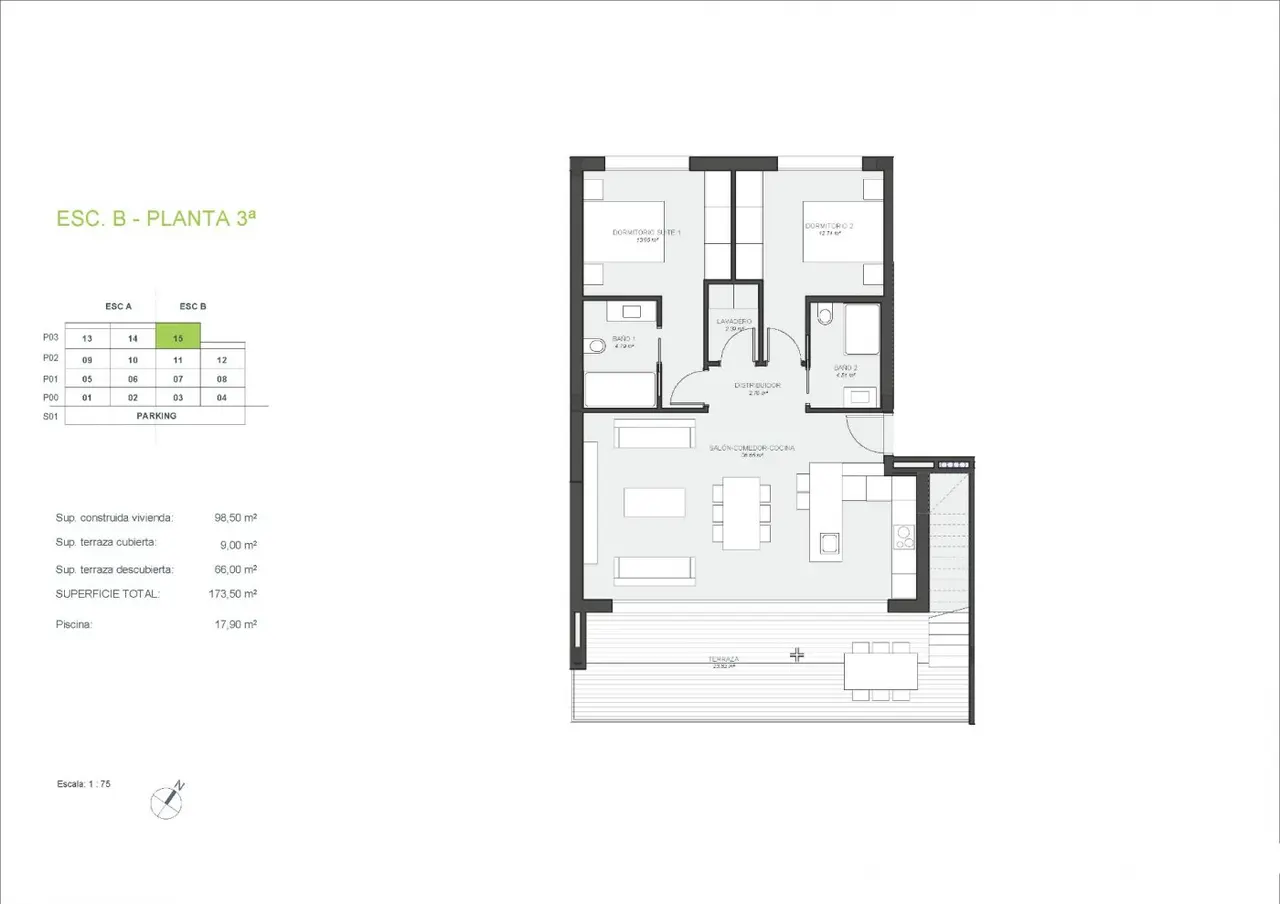 NOWY KOMPLEKS MIESZKALNY W LAS COLINAS GOLF Nowy budynek składa się z 15 luksusowych apartamentów z ogromnymi tarasami z widokiem na otaczający je naturalny zielony teren. Połączyliśmy nowoczesną i tradycyjną śródziemnomorską architekturę. Naszą ideą od początku było stworzenie apartamentów, których opis materiałowy zawiera między innymi: ogrzewanie podłogowe z wodą, kran z kranem, system odnowy powietrza, sufity redukujące dźwięk, lakierowane kuchnie, system inteligentnego domu i wiele innych. Biorąc pod uwagę uprzywilejowaną lokalizację i widoki uważamy, że kompleks oferuje idealne warunki do spełnienia kryteriów klientów o wyszukanym guście. Trzydzieste piętro składa się z 3 apartamentów: 2 apartamenty pochodzą z 3 sypialni, 3 łazienek i toalety dla gości i 1 apartament pochodzi z 2 sypialni, 2 łazienek. Z apartamentów mają Państwo bezpośredni dostęp do dużych tarasów na tym samym poziomie co apartament. Ponadto masz schody prowadzące do solarium, gdzie każdy apartament na najwyższym piętrze ma prywatny basen, toaletę, zewnętrzną kuchnię z małą windą z kuchni na dole i wiele więcej. W Las Colinas Golf & Country Club znajdziecie Państwo ponadto szeroki wachlarz udogodnień dla właścicieli nieruchomości, takich jak tenis, padel-tenis, fitness, masaż, golf, trekking i wiele innych. Wewnątrz Las Colinas Golf & Country Club znajdziesz również wiele restauracji, jak również minimarket z świeżo wypiekanym chlebem i wiele innych. Będziesz mógł cieszyć się 200.000 metrów kwadratowych pięknych śródziemnomorskich krajobrazów i będziesz mógł odbywać malownicze spacery wśród bujnej, rodzimej flory i rozległych pól gajów pomarańczowych i cytrynowych. Kompleks położony 40 minut od lotniska w Alicante i 1 godzinę od lotniska Murcia – Corvera.
