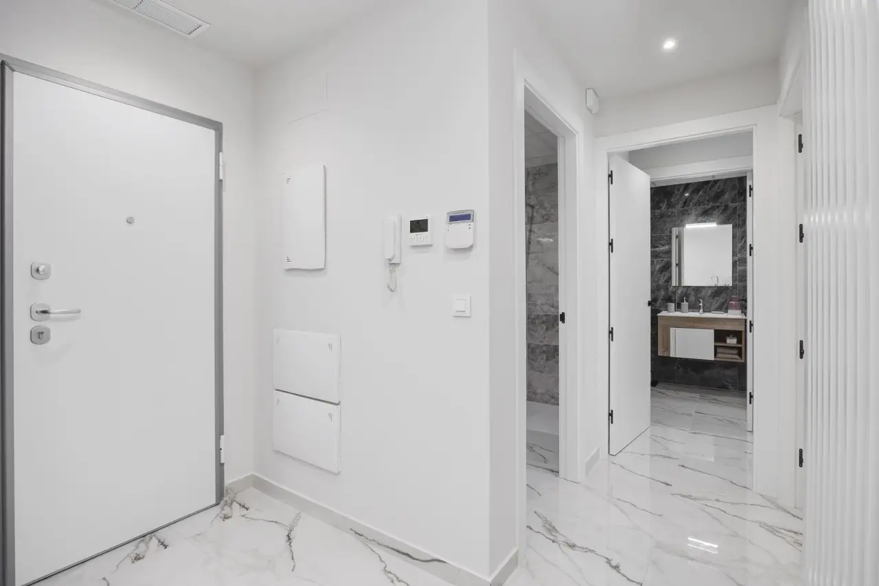 Nowa inwestycja mieszkaniowa w San Miguel de Salinas, rzut kamieniem od centrum miasta Przestronne mieszkania z imponującymi udogodnieniami Ten nowo wybudowany kompleks mieszkaniowy w San Miguel de Salinas oferuje nowoczesne mieszkania z 2 sypialniami i przestronnymi tarasami, starannie rozmieszczone na siedmiu piętrach. Zamknięta społeczność oferuje najwyższej klasy udogodnienia, w tym oddzielne baseny dla dorosłych i dzieci, bujne tereny zielone, plac zabaw dla dzieci i obszar do gry w petanque. Uprzywilejowana lokalizacja na wybrzeżu Costa Blanca Położona w uroczym miasteczku San Miguel de Salinas urbanizacja cieszy się strategiczną lokalizacją na wybrzeżu Costa Blanca. Znajduje się w odległości spaceru od centrum miasta, gdzie można znaleźć wszystkie niezbędne udogodnienia codziennego życia, w tym sklepy, restauracje i ośrodki zdrowia. Nieruchomość znajduje się w niewielkiej odległości od kilku interesujących miejsc: Pola golfowe Las Colinas i Campoamor: tylko 7 km, idealne dla miłośników golfa. Plaże Orihuela Costa i Torrevieja: Położone około 10 km od rezydencji, oferujące piękne piaszczyste wybrzeża. Centra handlowe: Zenia Boulevard, popularne miejsce zakupów, znajduje się zaledwie 9 km od hotelu. Lotnisko Alicante: 50 km od hotelu. Lotnisko Murcia Corvera: oddalone o około 55 km, idealne do połączeń regionalnych. Wysokiej jakości specyfikacje Każde mieszkanie zostało zaprojektowane z myślą o nowoczesnym wykończeniu i funkcjonalności: W pełni wyposażone kuchnie ze sprzętem AGD. Rolety z napędem elektrycznym. Bezpieczne drzwi wejściowe. Ciepła woda dzięki ogrzewaniu aerotermalnemu. W pełni zainstalowana klimatyzacja kanałowa. OFERTA URUCHOMIENIA: Pakiet mebli dołączony do pierwszych sprzedanych jednostek. Ponadto wszystkie mieszkania obejmują wyznaczone miejsce parkingowe. O San Miguel de Salinas San Miguel de Salinas to malownicza gmina w regionie Vega Baja del Segura, będąca częścią tętniącej życiem Wspólnoty Walencji. Położona w pobliżu granicy z Murcją miejscowość oferuje wspaniałe widoki na laguny Torrevieja i La Mata, a także spokojną, rodzinną atmosferę. Twój nowy dom czeka Niezależnie od tego, czy szukasz miejsca na wakacje, czy stałej rezydencji, ta nowa inwestycja w San Miguel de Salinas łączy w sobie luksus, komfort i bezkonkurencyjną lokalizację. Skontaktuj się z nami już dziś, aby umówić się na oglądanie i zrobić pierwszy krok w kierunku wymarzonej nieruchomości na Costa Blanca.